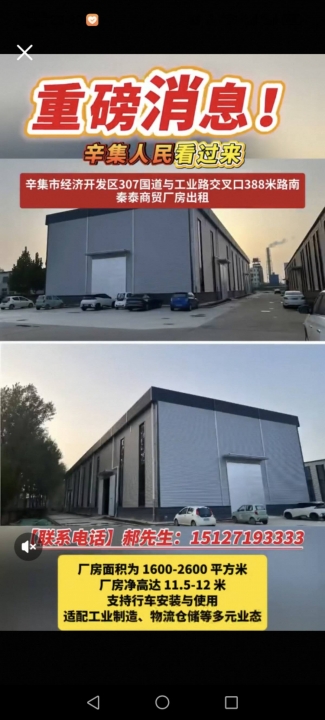 辛集厂房出租,郝先生